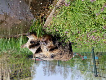Ons ras komt helemaal uit Nieuw-Zeeland. Dat is nogal een reis vanaf Nederland, hè? De naam Kune Kune betekent eigenlijk “dik en rond”. En eerlijk is eerlijk… dat past best goed bij ons! Daarom mogen bezoekers ons ook geen extra eten geven, anders zouden we nóg dikker en ronder worden. Kune Kune-varkens staan bekend om hun vrolijke en sociale karakter én hun slimheid. Maar dat wisten wij natuurlijk allang, wij zijn gewoon ontzettend leuk!
